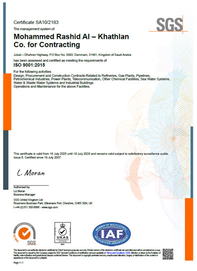 We, the management of MRK, are committed to the principle of providing consistently good quality products and services in order to establish a strong relationship with our clients and to enhance the company reputation. Keeping this in mind, the company has adopted a quality system based on ISO 9001:2015 quality system model for quality assurance in design, procurement, and construction activities.